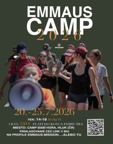 Zveme všechny ve věku 14 - 19 let na týdenní CAMP EMMAUS. Proběhne 20.–25. 7. 2026 v Campu Babí Hora v Hluku. Přihlas se a zažij týden, na který nezapomeneš. Týden, který mění životy!