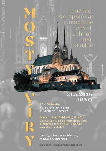 Srdečně zveme na modlitební večer Mosty víry, tentokrát v neděli 31. 5. 2026 v katedrále sv. Petra a Pavla v Brně!